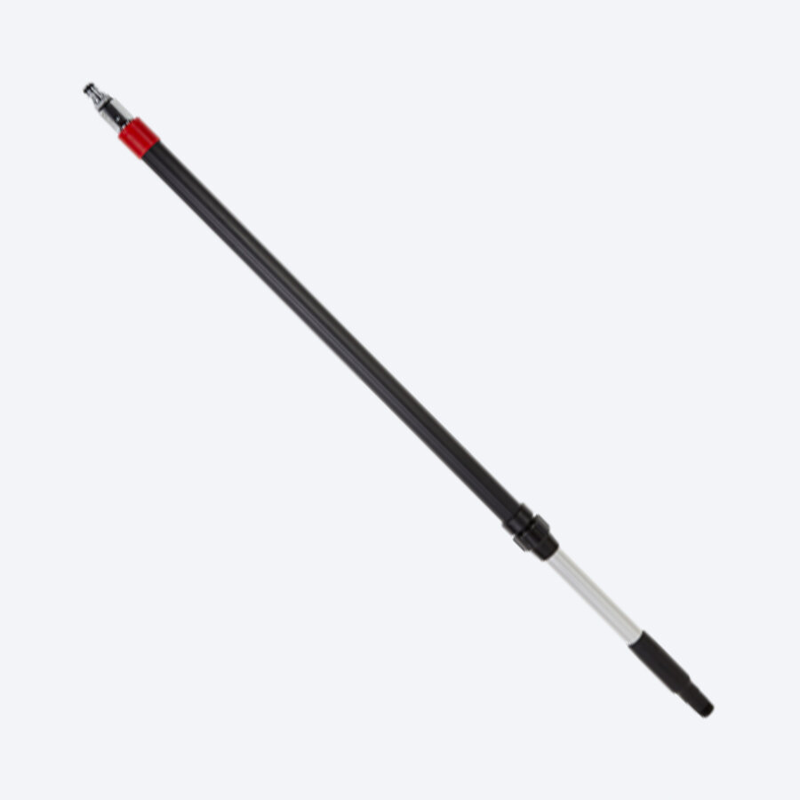 Professioneller Teleskopstiel mit integrierter Wasserführung, Gardena-Anschluss und Ein/Aus-Kugelhahn. Die Ummantelung sorgt für sicheren Halt, der Ein/Aus-Schalter ermöglicht komfortables Steuern des Wasserflusses. Geeignet für einen Wasserdruck von bis zu 6 bar.