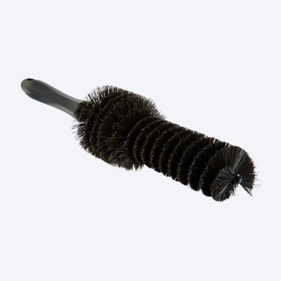 Chemikalienbeständige Felgenbürste mit weichen Naturborsten.