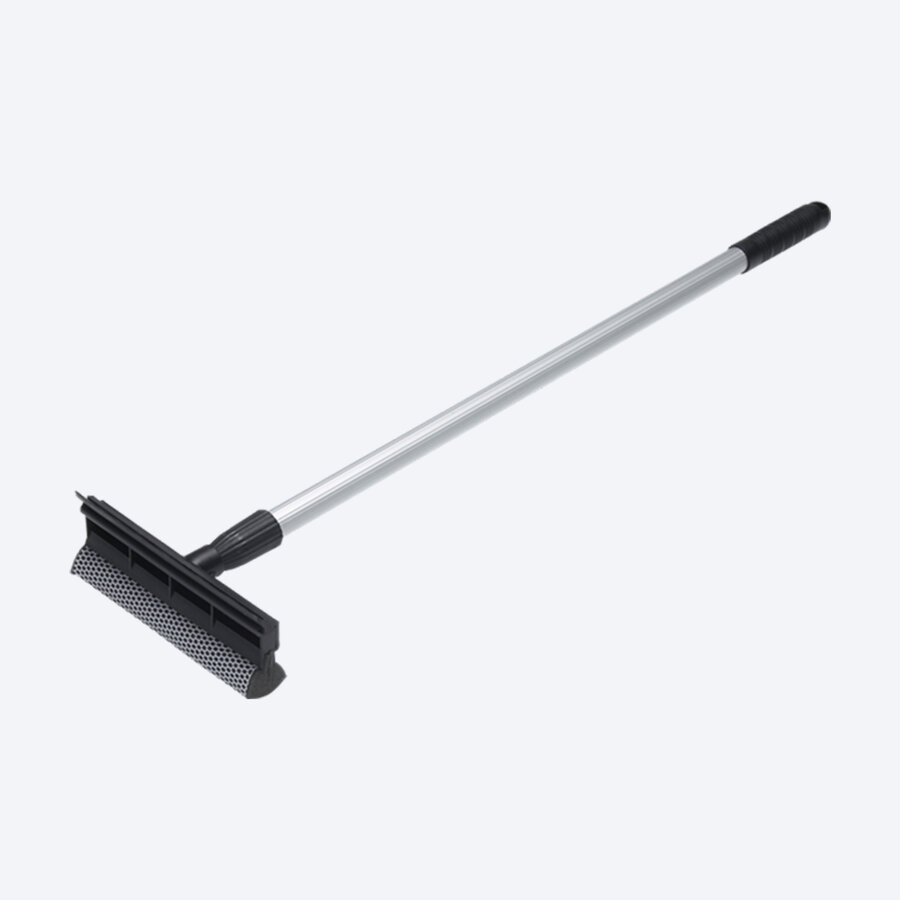 Scheibenschaber mit Gummischaber und Schwamm ideal zum Waschen von Fenster- und Windschutzscheiben sowie zur Entfernung von Insekten. Ausgestattet mit Teleskopstiel, der von 710 mm auf 1.250 mm verlängert werden kann – besonders geeignet für große Fahrzeuge wie Busse oder Lkw.