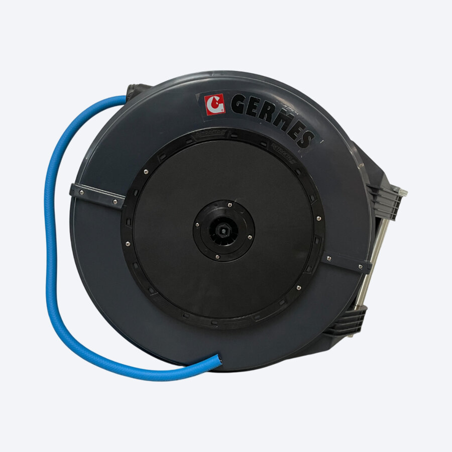 Automatik-Schlauchaufroller mit 25 m PVC-Druckluftschlauch.