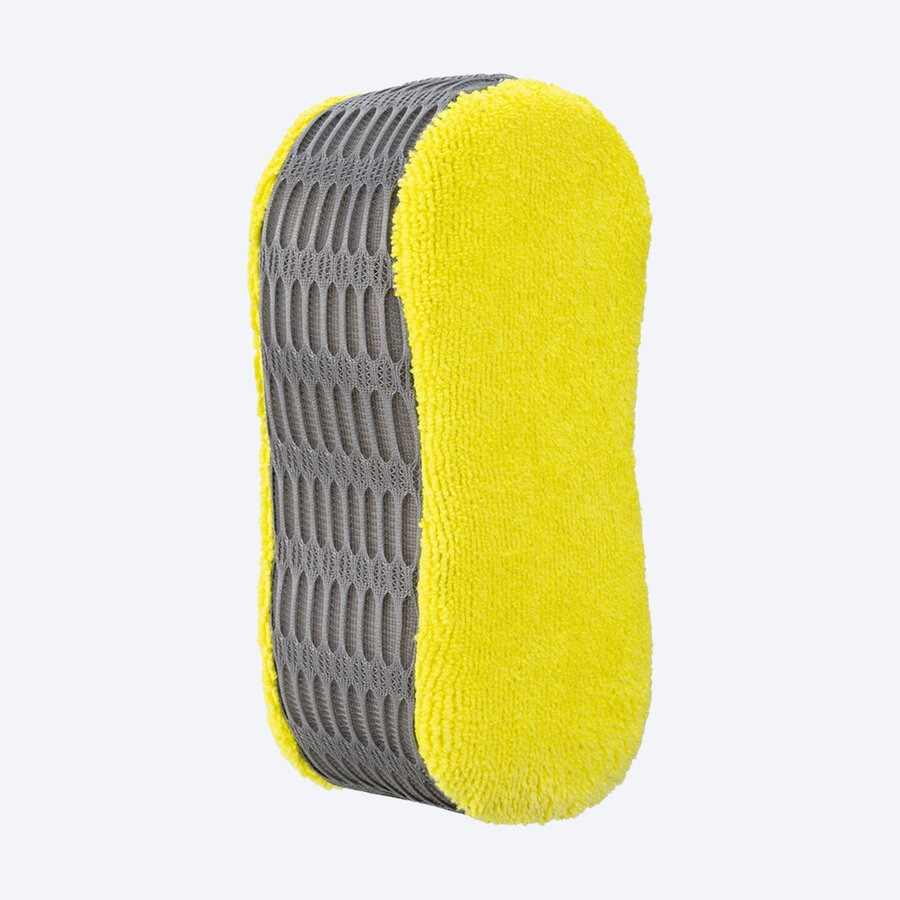 Taillierter Microfaserschwamm für die gründliche Reinigung glatter Oberflächen. Vorder- und Rückseite aus gelber Microfaser, das graue Mittelteil sorgt für besseren Griff. Die ergonomische Form erleichtert die Reinigung schwer zugänglicher Stellen.