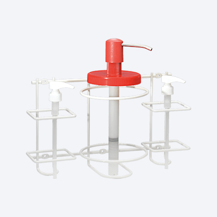 Praktisches Wandhaltersystem für drei Produkte: Hautschutzlotion (Art. 330), Hautpflegelotion (Art. 331) und Handwaschpaste Extra (Art. 225). Inklusive Pumpen für komfortables und hygienisches Dosieren, ohne Inhalt.